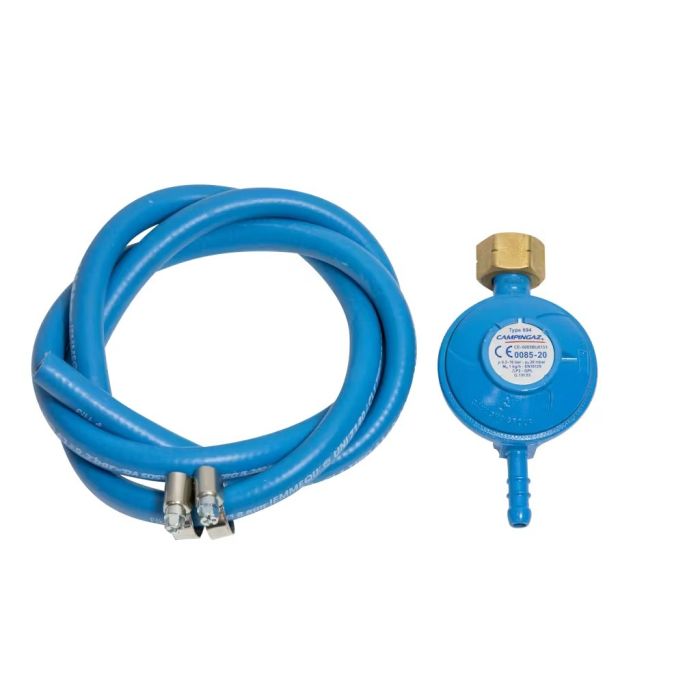 Kit regolatore, tubo, fascette per bombole attacco Italia.
