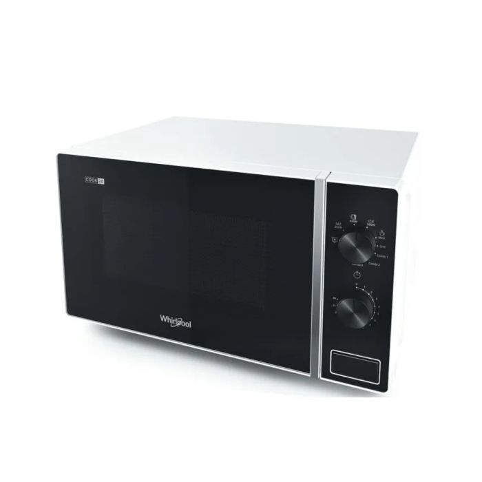 Forno a microonde Whirlpool MWP103W da 20 litri a libera installazione, con potenza massima di 700 W e funzione grill al quarzo da 1000 W. Dotato di piatto girevole da 25 cm, 5 livelli di potenza e apertura a tasto laterale. Design bianco compatto, ideale per riscaldare, gratinare e cuocere con funzione grill.